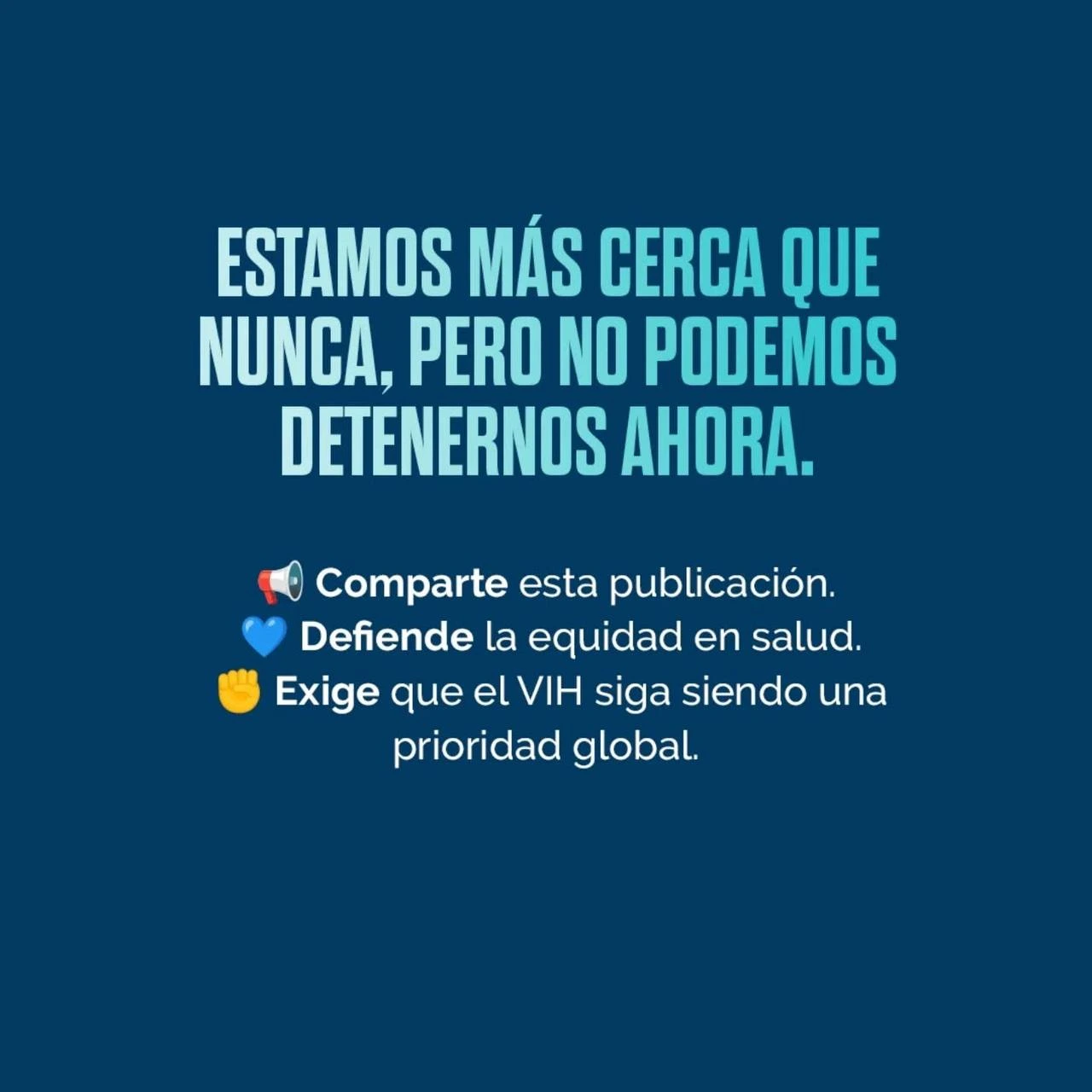 Estamos más cerca que nunca de acabar con el VIH como amenaza para la salud pública mundial, pero este progreso no es irreversible. No podemos permitir que los recortes de fondos y la creciente desigualdad nos hagan retroceder. Es el momento de redoblar los esfuerzos, proteger los logros alcanzados y garantizar que nadie se quede atrás en la lucha por un futuro sin VIH.