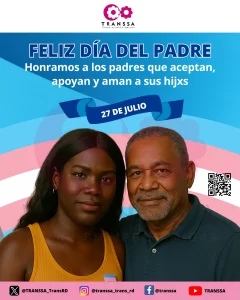 Este 27 de julio, en la República Dominicana, celebramos el Día del Padre. Es una fecha para honrar y agradecer a esos hombres que nos guían y aman. Desde TRANSSA, queremos hacer un reconocimiento muy especial: a esos padres que han abierto su corazón y mente para aceptar y apoyar incondicionalmente a sus hijos e hijas de la comunidad trans. Su amor y comprensión son un faro de esperanza, un pilar fundamental en la vida de sus hijes.